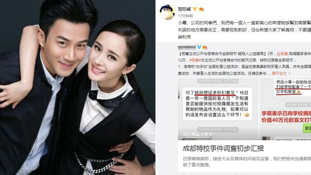杨幂疑陷公益骗局 刘恺威称善心被利用