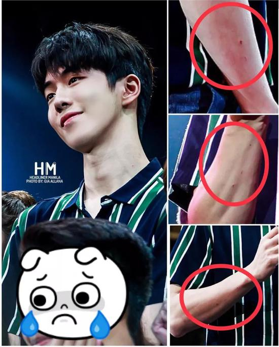 事后有人拍摄到南柱赫手臂上全是抓伤的痕迹。南柱赫现场并没有表现出不满,敬业地完成了工作。