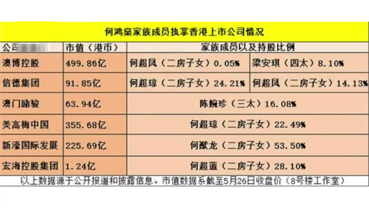 赌王何鸿燊各房身家大拆解:二房526亿港元成最大赢家