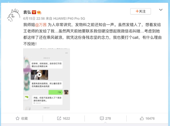这两天姐姐们都在发主题曲的直拍,她错把要发给节目组的直拍片子发给了袁弘。聊天记录里,她的语气甚至有点憨,对social有些笨拙却真诚的懵懂感。