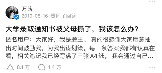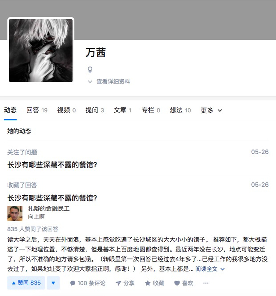 再比如,别的女明星把知乎当宣传渠道使,万茜把知乎……当美食攻略和学习攻略,甚至搜索引擎来用。