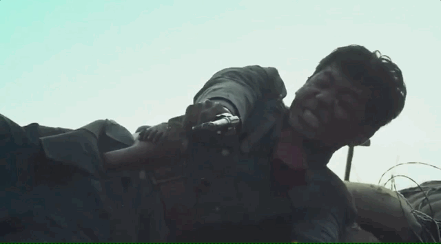 在影片中,为了效果逼真,剧组把爆破道具装在小型摄影机中。烟熏火燎的坡上,白宇来来回回多次在硝烟四起的战场上滚下来、再上去、再挣扎,就算把自己变成“黑人”也毫不在乎。他没有在表演,而是与角色完全融为了一体。