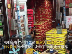 那天店里的新人每人只扛了三袋,而他直接就把剩下的9袋全扛在了肩上,没想到这个瞬间被一旁的工友记录了下来,随即走红网络。