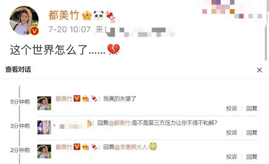 都美竹发文“这个世界怎么了,我真的失望了”,暗示现在的结果并不是她想要的,