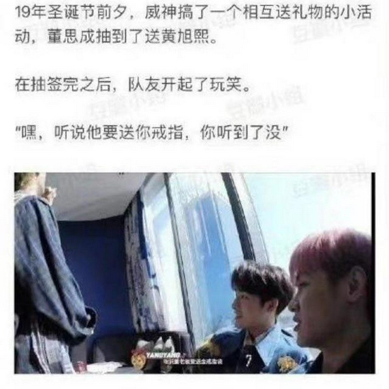 根据聊天记录,男方说,这个戒指是由董思成(win win)所送,而在2019年圣诞节前夕,董思成确实送了这样一个戒指给黄旭熙,这个细节与聊天记录吻合。