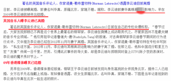 英国某知名音乐评论人则透露,2012年11月底,李云迪与华真离婚。