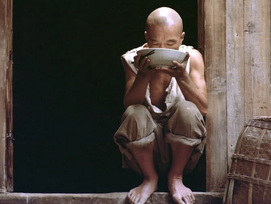 端着碗往门槛上一蹲,俨然一个陕北大地上,老实本分的农民。