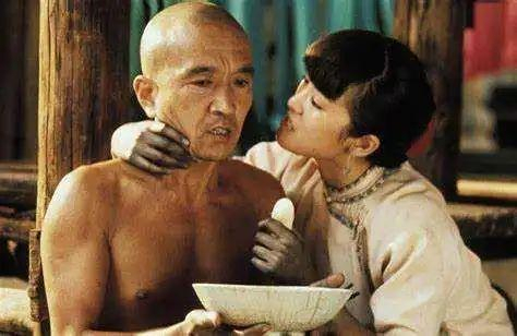 遇见巩俐饰演的菊豆后,他的欲望透过偷窥的视线,丝丝蔓延出来。