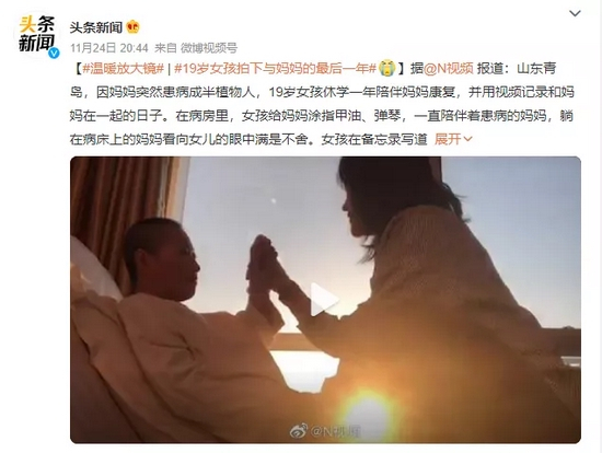 虽然妈妈被病魔折腾得面容憔悴,但看着女儿的眼神里都是温柔和坚定。