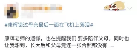 “康辉老师的遗憾,也在提醒我们要多陪伴父母。同时也让我想到,长大后和父母竟连一张合照都没有…… ”