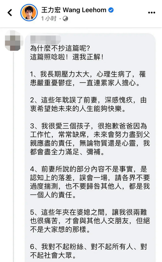 原标题:王力宏道歉声明和脸书网友评论高度相似,网友:这是抄作业吧?难怪通顺了