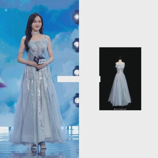 久未露面的唐嫣这次参加跨年演出,身兼主持和歌手两个任务,所以她也选择了两套礼服。一套水蓝色吊带亮片长裙,色调有些清淡显得陈旧,礼裙设计中规中矩,并不太大特色,纯靠唐嫣的颜值和身材撑场。