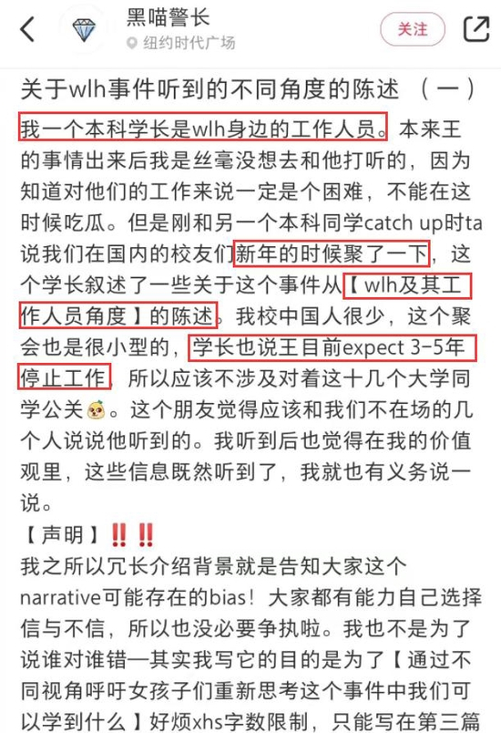 笔者称自己的本科学长是王力宏的工作人员,因为新年聚会,从这位学长那里听到了整个事件(王力宏及工作人员)方面的陈述,指王力宏目前计划