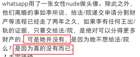 离婚申请分割财产等流程已经走了两年之久,如果李靓蕾有任何王力宏出轨的证据,只要交给法院,是绝对可以分得更多财产的,可是她并没有。