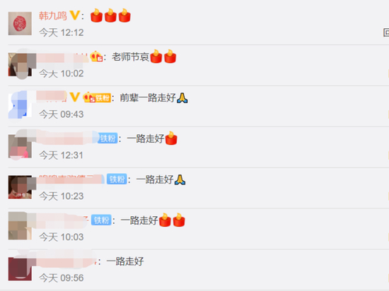 喜爱相声的网友们纷纷评论:“前辈一路走好”“先生千古”“老师节哀”,德云社演员韩九鸣也在评论区附上三根蜡烛哀悼。