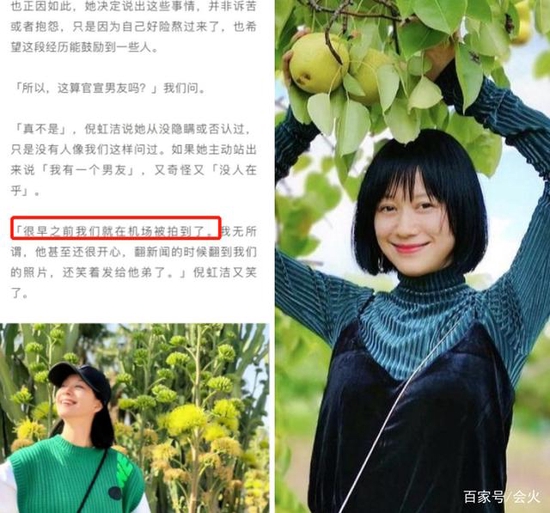 据倪虹洁表示,自己并没有想要隐藏自己的真实感情生活,而且她曾和男友一起在机场被拍