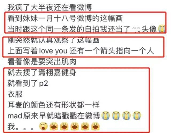 也别去现场追问了,就看看一整天下来,网友扒出来的张子枫与焉栩嘉之间的更多互动吧——张子枫晒出的人物画与焉栩嘉高度相似,还用箭头标上了“love you”。