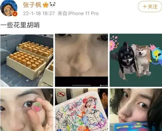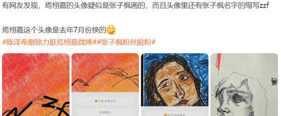 焉栩嘉与张子枫画风基本一致的微博头像,完整版原来还有三个字母“zzf”,也和张子枫大名拼音缩写对应。