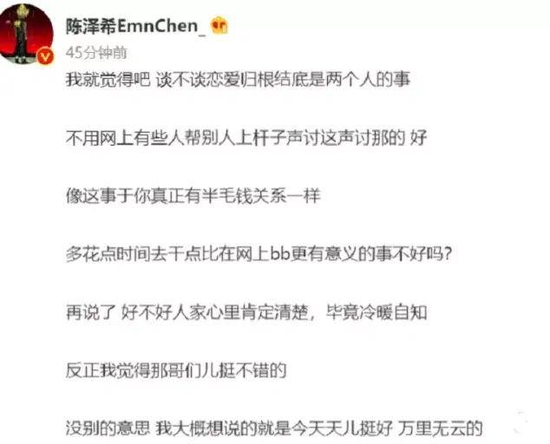 加上焉栩嘉前队友早早就站出来力挺,言语中透露的意思应该也足够明显了。