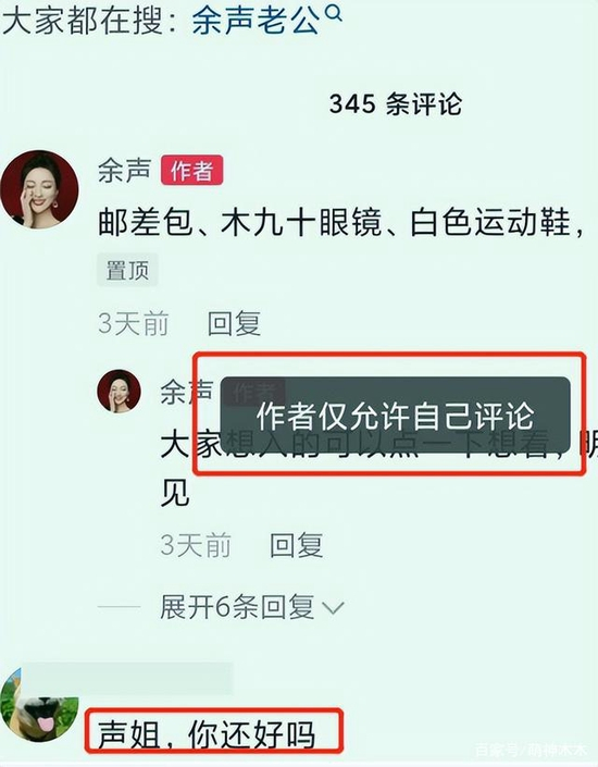 目前网友唯一能接触到的询问渠道就是余声和她老公的账号了,没想到就在舆论发酵后不久,余声和她老公的账号评论区就都关闭了,显示作者仅允许自己评论。