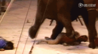 经过一段暗无天日的折磨后,精神崩溃的小象不得不放弃抵抗,开始服从人类的指令,做出各种各样的动作。
