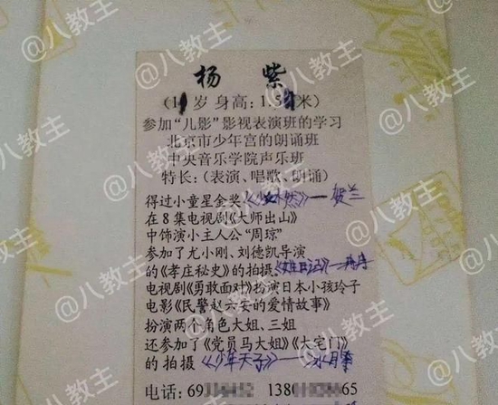 察觉了女儿对表演的喜欢,于是杨爸爸便把杨紫送去少年宫学习表演。