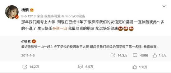 而杨紫、张一山也成为了彼此最珍贵的好友,友情延续至今。