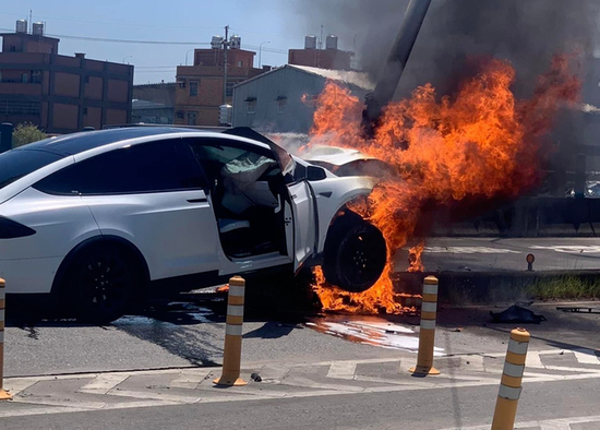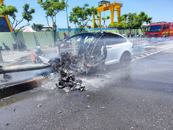 而据当地消防部门表示,消防队员抵达时,见到车辆火势相当猛烈,现场冒起浓浓黑烟,火势经紧急扑灭后熄灭,但价值400万新台币(约合人民币90万元)的特斯拉车头,已经被烧到仅剩骨架。
