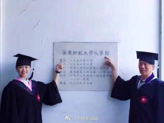 胡佳蕴是华东师范大学历史专业2017届本科生,今年毕业的她近日晒出一组特殊的毕业照:她的爷爷也毕业于华东师大,是1962届化学系本科生,55年后,这对“校友祖孙”在学校同框拍了组毕业照。