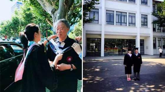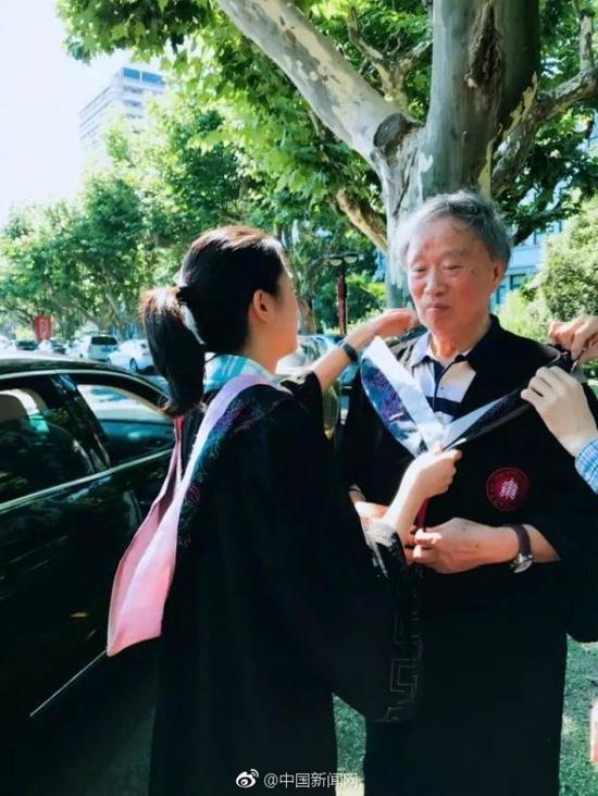 12张1962年毕业的爷爷没有穿过学士服,胡佳蕴就带着他在中北校区“补拍”了毕业照。这样温馨的场景,也感动了许多同学:“很有爱的画面,很可爱的爷爷,很孝顺的孙女”。