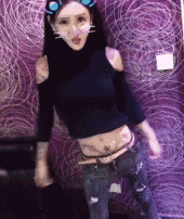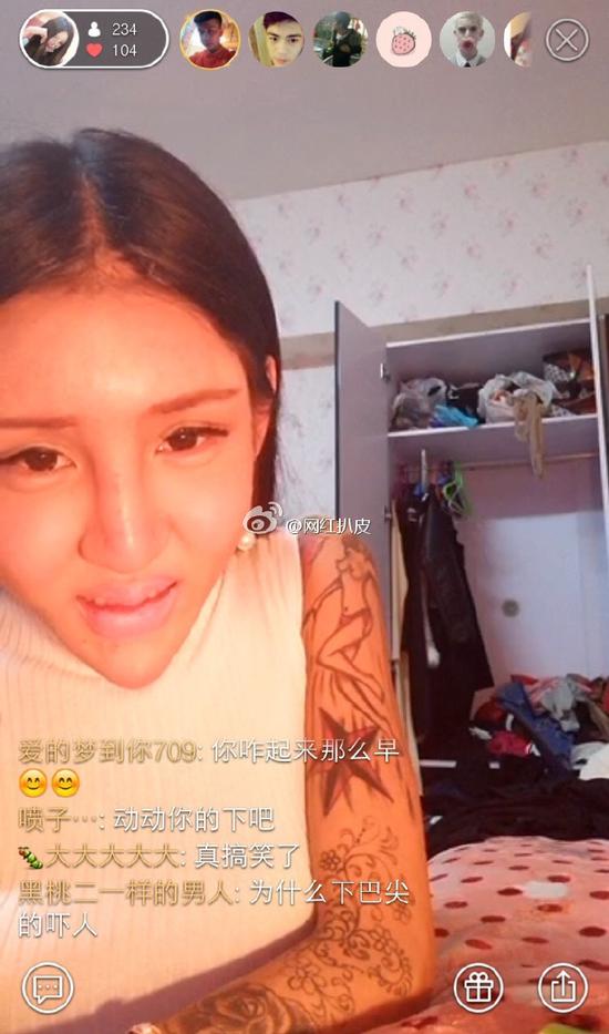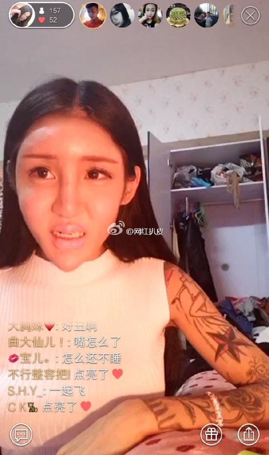 不得不说有时候动起来的也还是挺好看的,或者舞姿虽然有点不可描述,但是这么看起来脸是清纯的~不仅是脸部整形,她还说自己的身材也是通过抽脂变好的,原来150斤,抽脂变成现在这样了,并且留下的疤痕全部用纹身遮盖上了。。。真的是全身的纹身啊,背后、锁骨、就连大腿上也没放过,还有腰上肚子上,穿破洞牛仔裤都有一种特别的赶脚。。。