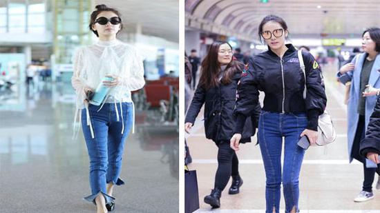 撞车?NO!撞人?NO!是撞裤啦!S型身材的胖迪与小纸片人周冬雨先后在机场街拍中宠幸同一款开叉牛仔裤!热巴身材凹凸有致,前凸后翘魅力四射!而东叔呢?则把裤脚挽了起来,俏皮可爱同样迷人!