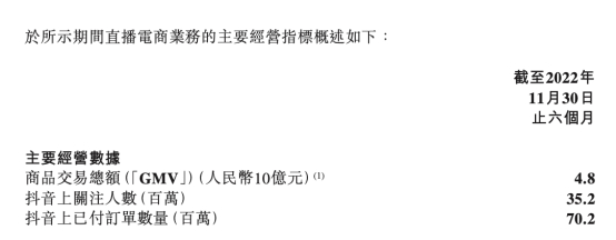 公告公布了三项核心数据。2022年6月-11月,新东方在线商品交易总额(GMV)达到48亿元,抖音上关注人数3520万,抖音平台已付订单数7020万。