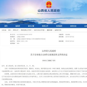 近日,山西省人民政府发布《山西省人民政府关于宣布废止124件行政规范性文件的决定》。