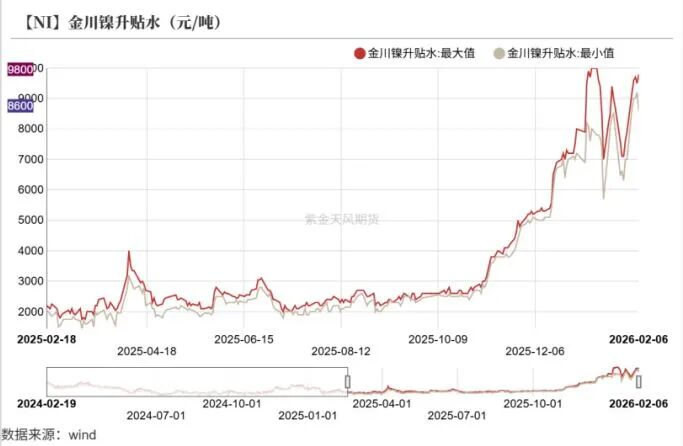 紫金天风期货2月10日分析指出,整体来看,镍价近期呈现震荡盘整格局,基本面延续强预期与弱现实之间的博弈。尽管市场预计印尼镍供应可能因配额缩减而显著收缩,但此前镍价上涨带动短期供应有所增加,国内库存持续累积。后续来看,镍基本面不改修复预期,原料端矿价大幅上行,而雨季扰动及MOMS系统(印尼政府监测系统)审核延期仍对供给形成制约,镍矿升水存在进一步走高可能,镍产业链成本支撑较强,预计将对价格形成底部韧性。