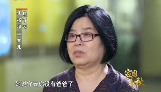 焦裕禄二女儿 焦守云:我记得那时候把我父亲埋葬了以后,我母亲回来的时候哭得惊天动地。她看见我一下子把我抱到怀里了,她说守云你没有爸了。我当时还不是很理解这句话,但是我看着妈妈哭得那个样子就知道家里头发生了大事。我姐姐看我扎了一个红头绳,一把就把红头绳拿下来了,后来她给我找了一个白的布条,我突然感觉到真的是没有爸爸了。