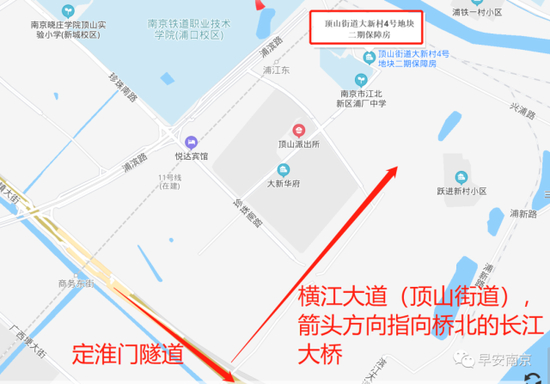 我在地图上找到了大新村保障房,结合横江大道来看,发现拆迁位置大致在大新华府、跃进新村附近(具体以官方发布为准)。