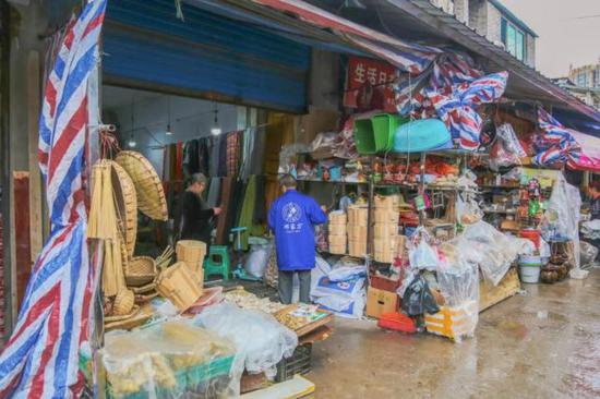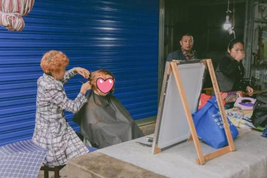 往里走,还可以看见外面少有的露天理发店。用最简单的工具,就能为顾客把头发打理成想要的样子。