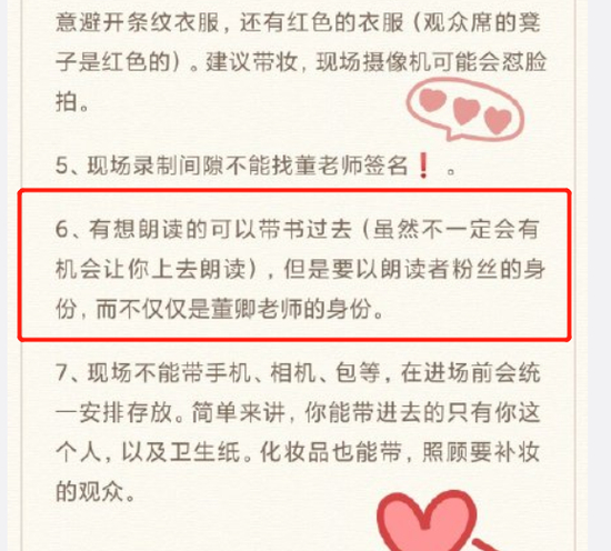 而且朗读者相关的官方也发出来关于录制的信息,强调了需要去现场的手续和规则,特别是不能和董卿私下接触,保证节目顺利录制,因此能看出来董卿并没有受到影响。