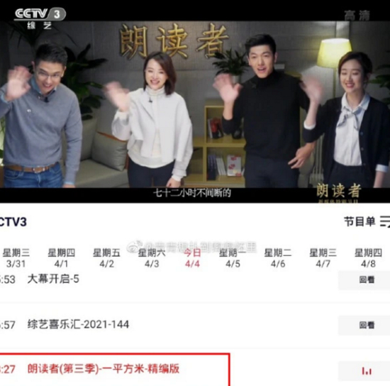 不过在4月13日,有董卿多位观众晒出了《朗读者》第三季的最新录制信息,有观众在社交平台上邀请一起观看录制节目的网友一起拼房,从时间上来看在4月20日有一场董卿的《朗读者》需要录制。