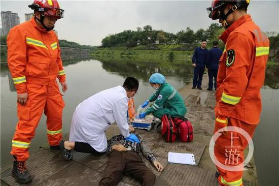 记者从荣昌区消防救援支队了解到,事情发生在5月6日下午3点钟左右,一名中年男子落入河中,消防员赶到现场时,溺水者已经被路过的热心市民救了上来,经过医护人员半个多小时的心肺复苏急救,男子仍不幸身亡。