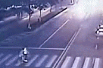 安徽宿州,一行人低头玩手机过马路,被驶过来的轿车撞飞。
