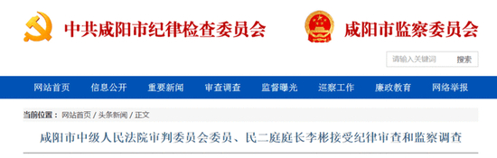 咸阳市中级人民法院审判委员会委员、民二庭庭长李彬涉嫌严重违纪违法,目前正接受纪律审查和监察调查。