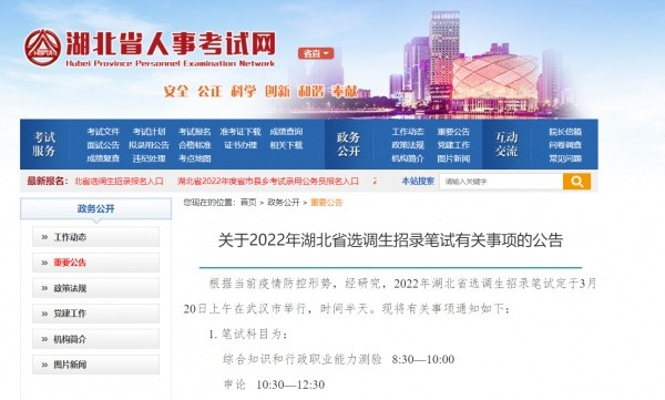 3月20日开考!2022年湖北选调生笔试时间定了,注意事项