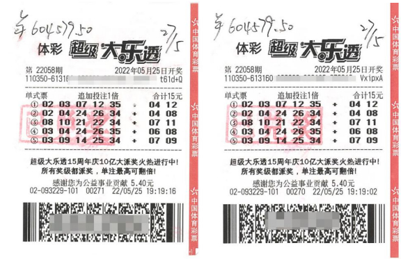 在5月25日开奖的第22058期体彩大乐透中,厦门的钟先生以两张追加单式票合计中奖120万余元。