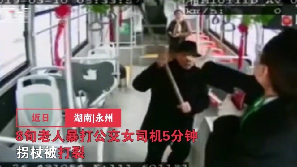 湖南一8旬老人暴打公交车女司机长达5分钟,拐杖都被打断了
