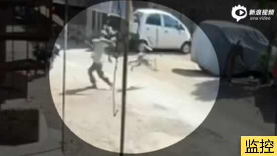 监控猴子凌空飞踹路人 得手后迅速开溜