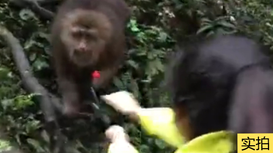 女游客峨眉山边喂食边拍摄 手机被猴子抢走