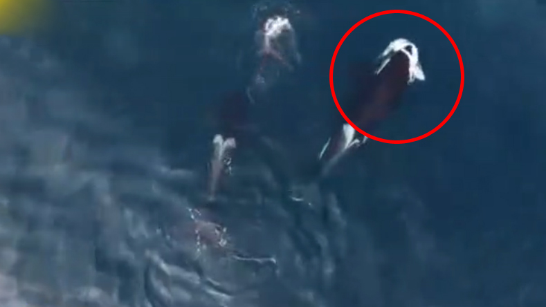罕见!航拍虎鲸带幼崽捕猎鲨鱼 鲨鱼垂死挣扎
