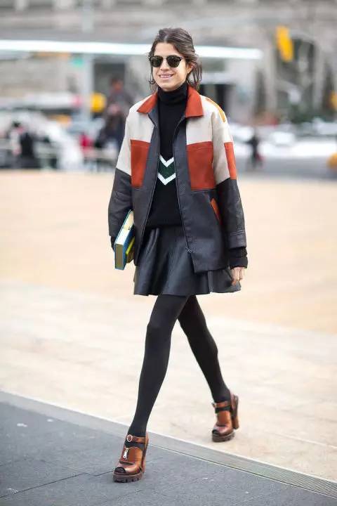 不同的材质效果不同,百褶裙很好的中和大衣的厚重感。皮裙则让你优雅的同时气场满满!